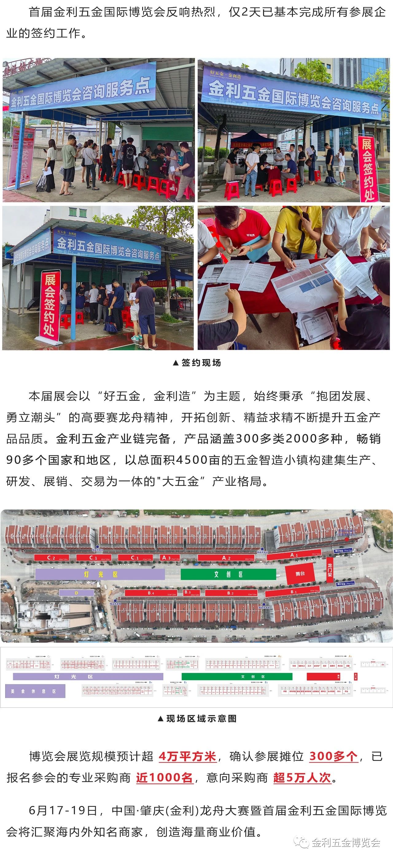 2023年6月7日,中国·肇庆(金利)传统龙舟大赛暨首届金利五金国际博览会各项筹备工作已基本就绪,6月17日上午正式开幕。